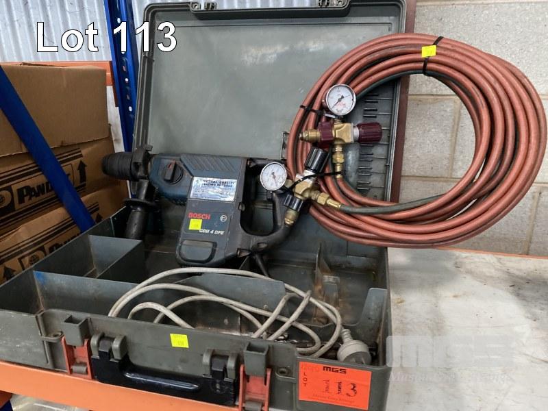 HAMMER DRILL, BOSCH, GBH-4-DFE, 240V WITH OXY ACETYLENE REGS & HOSE