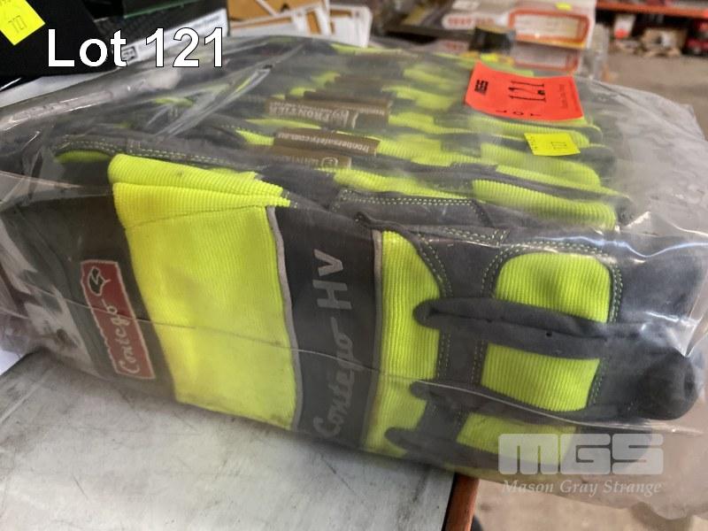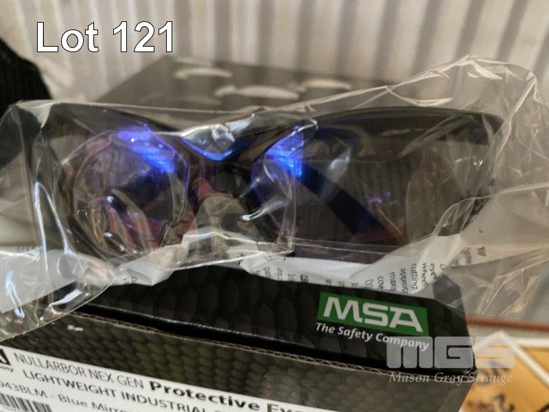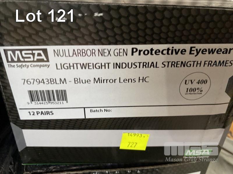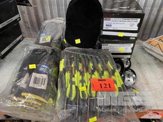 2 x BOXES (12/BOX) PROTECTIVE SAFETY GLASSES, MSA NULLARBOR NEX GEN MOD: 76943BLM BLUE MIRROR LENS, HC, UV400 & 24 x PAIRS PRO SENSE MAXI PRO GLOVES SIZE 7, 4 x UVEX PROTECTIVE SAFETY CAPS & 12 x PAIRS CONTEGO HI-VIS WORK GLOVES MECHANIC STYLE SIZE M, ETC
