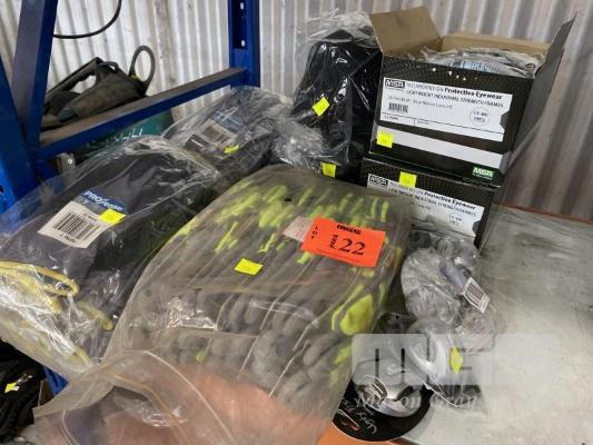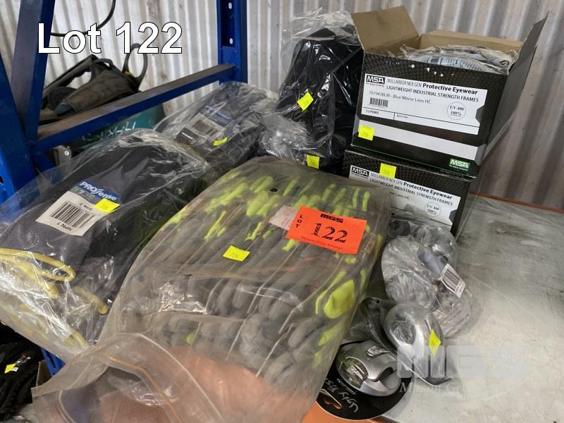 2 x BOXES (12/BOX) PROTECTIVE SAFETY GLASSES, MSA NULLARBOR NEX GEN MOD: 76943BLM BLUE MIRROR LENS, HC, UV400 & 24 x PAIRS PRO SENSE MAXI PRO GLOVES SIZE 7, 4 x UVEX PROTECTIVE SAFETY CAPS & 12 x PAIRS CONTEGO HI-VIS WORK GLOVES MECHANIC STYLE SIZE M, ETC