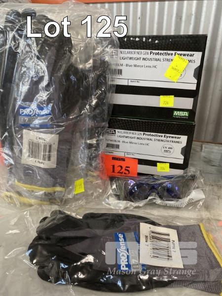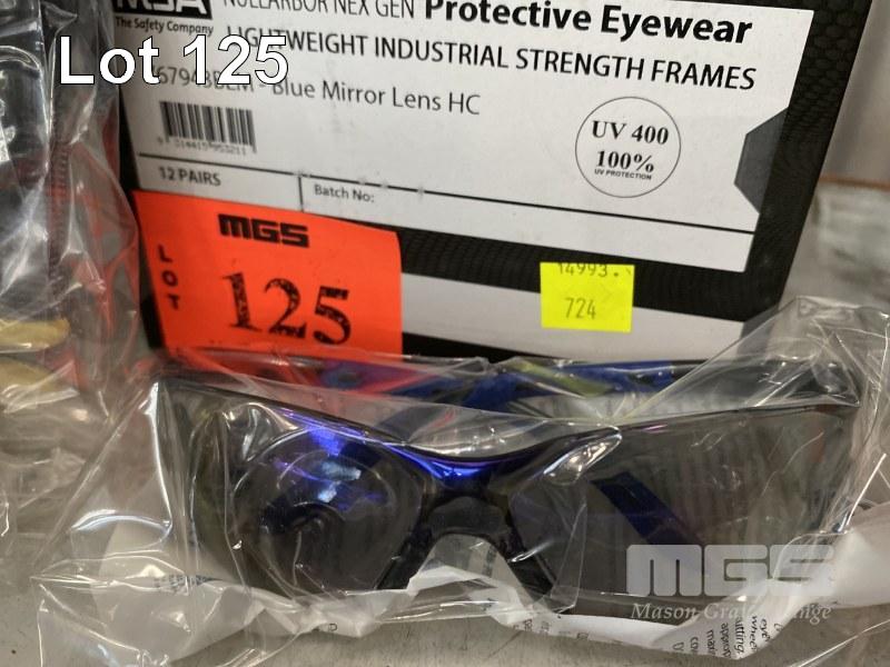 2 x BOXES (12/BOX) PROTECTIVE SAFETY GLASSES, MSA NULLARBOR NEX GEN MOD: 76943BLM BLUE MIRROR LENS, HC, UV400 & 12 x PAIRS PRO SENSE MAXI PRO GLOVES SIZE 7
