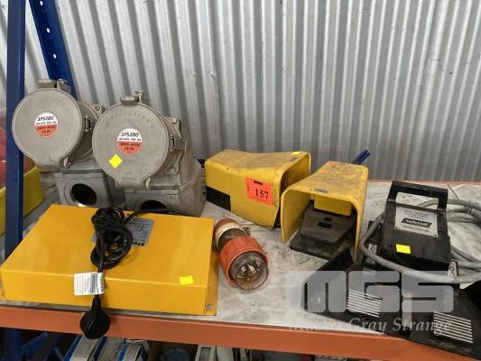 2 x PNEUMATIC FOOT CONTROLLERS, 1 x VALLEY LAB ELEC FOOT SWITCH, 2 x PROCONECT, 250A, 440V, ALLOY CONNECTION SOCKETS & DAVEY STERIFLOW UV LIGHT CONTROLL UNIT.