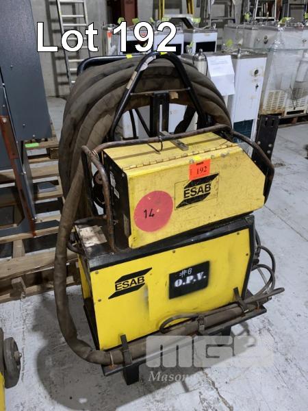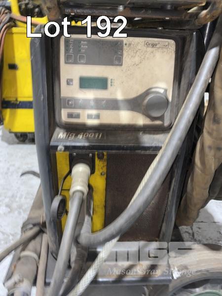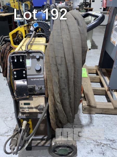 MIG WELDER, ESAB MOD: MIG4001I & WIRE FEED UNIT ARISTO YARD FEED 2000, 415V ON TROLLEY WITH CABLE