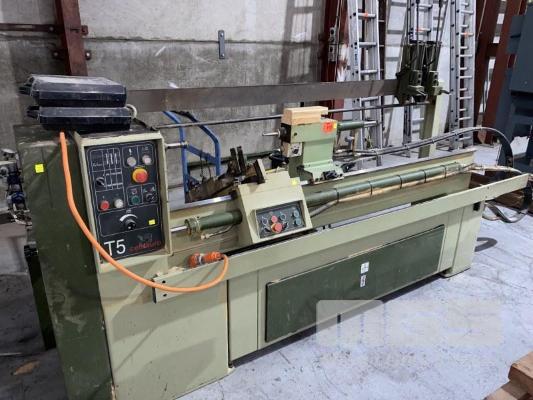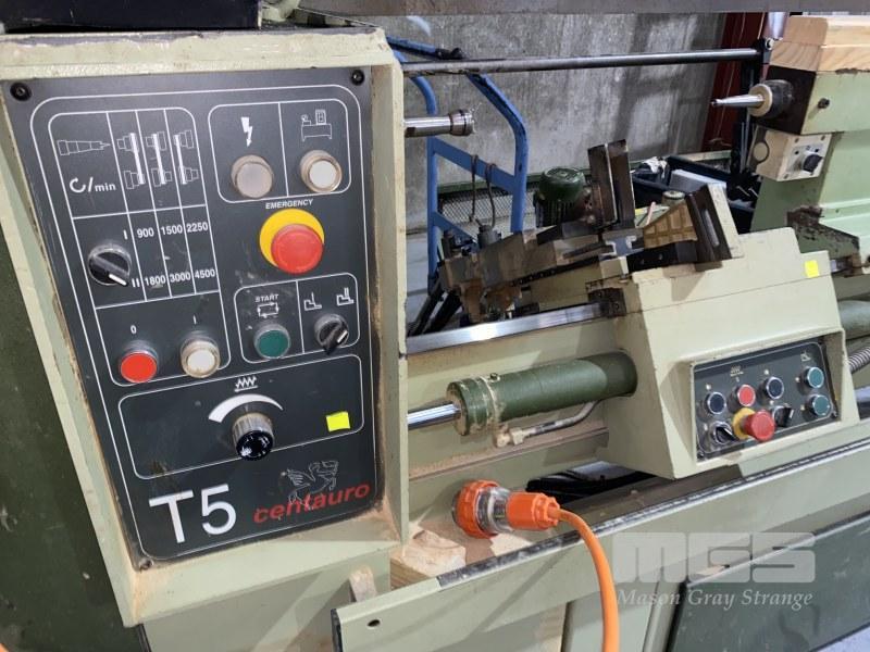 WOOD LATHE, CENTAURO MOD: T5-1600 DOM: 1997 5kw, 415V BED LENGTH: 1750mm WITH HYDRAULIC POWER PACK UNIT, ASSTORTED STEADIES, BLADES AND BLADE SHARPENER.