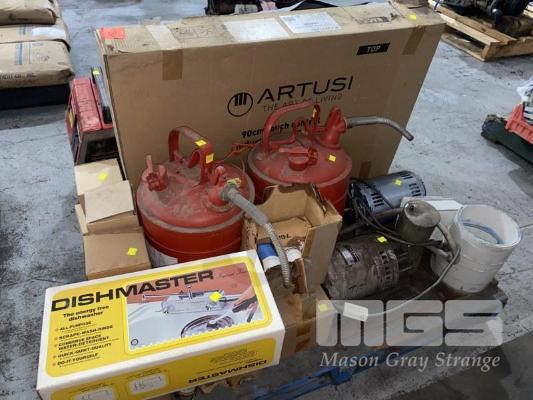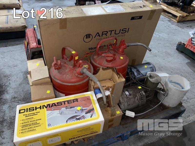 HONDA EX1000 GENERATOR, INDUCTION COOKTOP, 2 x FUEL CANS, ELEC MOTORS, PARTITIONS, ETC 1 x PALLET