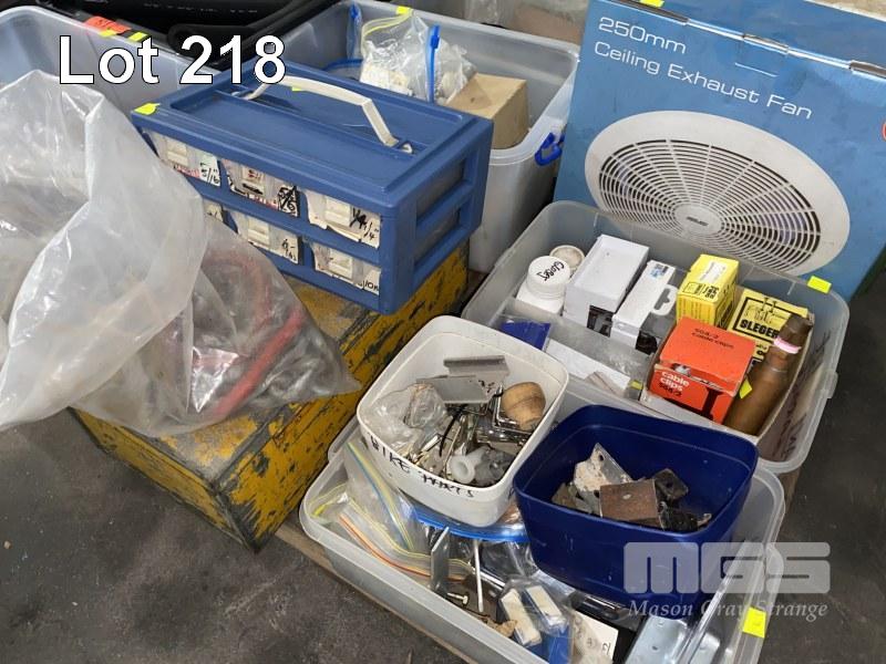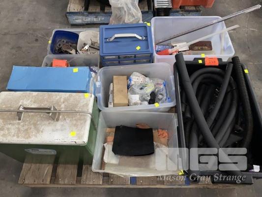 EXTRACTOR FAN, 250mm, FASTENERS & FITTINGS, ELEC COMPONENTS, PARTS DRAWER UNIT WITH ASSORTED SCREWS & WASHERS, SHIMS, STEEL TOOL BOX, PIPE INSULATION & ESKY, ETC 1 x PALLET