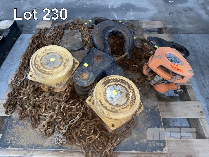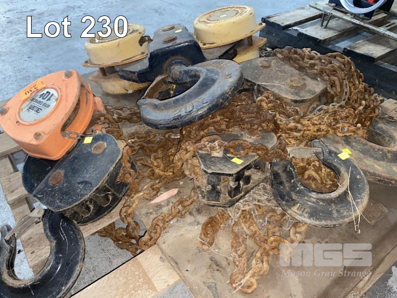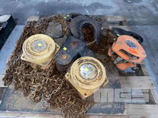 CHAIN BLOCK & HOOK ASSEMBLIES INC 1 x BEAVER 3S 10 TONNE, 1 x BEAVER 3G TWIN CHAIN BLOCK WITH HOOK, 20 TONNE & 2 x ASSORTED HOOKS 10 & 20 TONNE 1 x PALLET