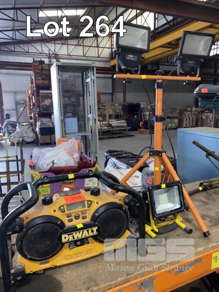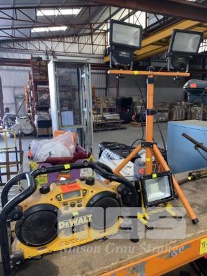 DEWALT WORK SITE RADIO CHARGER MOD: DC011 240V WITH LED WORK LIGHTS DUAL HEAD TRIPOD MOUNT, 240V & NU-TEC RECHARGEABLE LED
