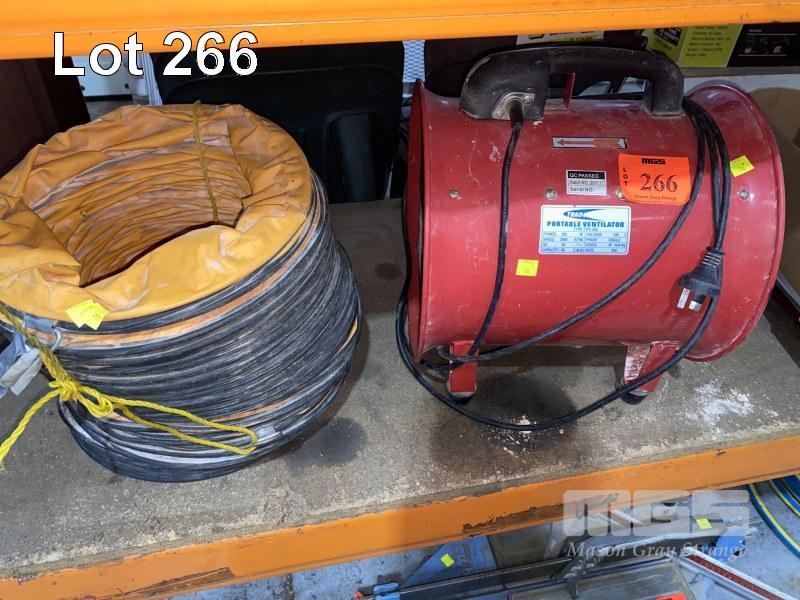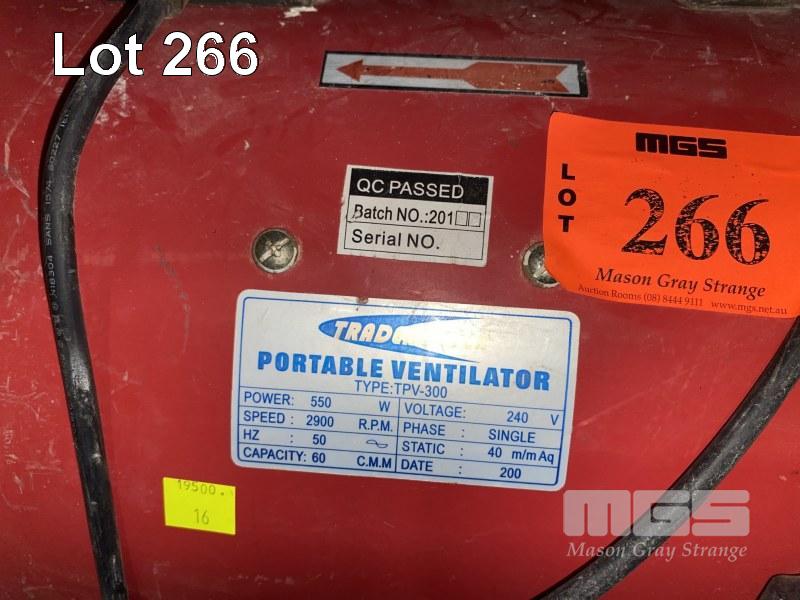 PORTABLE DRUM FAN VENTILATION UNIT, TRADEMASTER TYPE; TPV-300 550w CAP: 60cm/MIN 300mm DIA, 240V WITH EXPANDABLE DUCTING TUBE TO SUIT