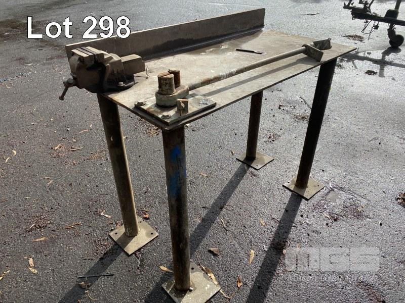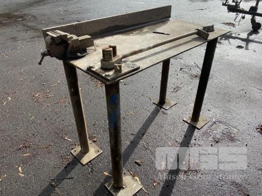STEEL WORK STAND, HEAVY DUTY WITH BACK STOP, 1250 x 650 x 950mm (H), 10mm PLATE TOP & 100mm VICE