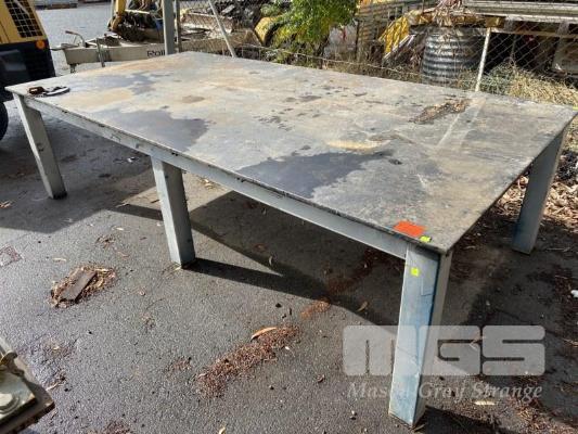 STEEL WORK BENCH, HEAVY DUTY, 3000 x 1500 x 800mm (H) 20mm PLATE TOP, STEEL BASE, FULLY WELDED