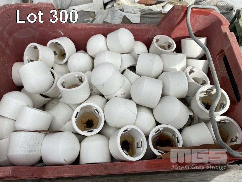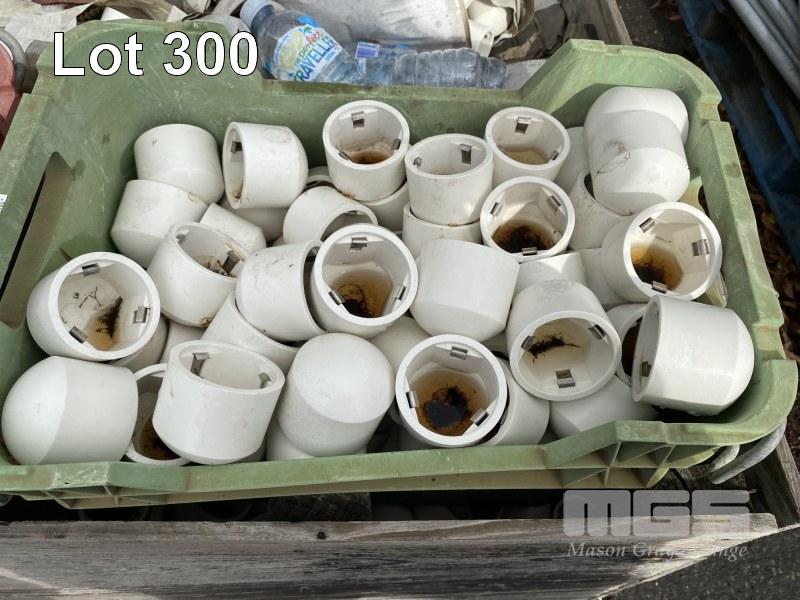 LARGE QUANTITY PVC CAPS, 60 & 60mm DIAMETER, 1 x TIMBER CRATE
