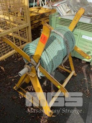 HEAVY DUTY STEEL WIND OUT REEL WITH SYNTHETIC ROPE, 20mm DIAMETER, REEL SIZE: 1000 x 900 x 100mm (H)