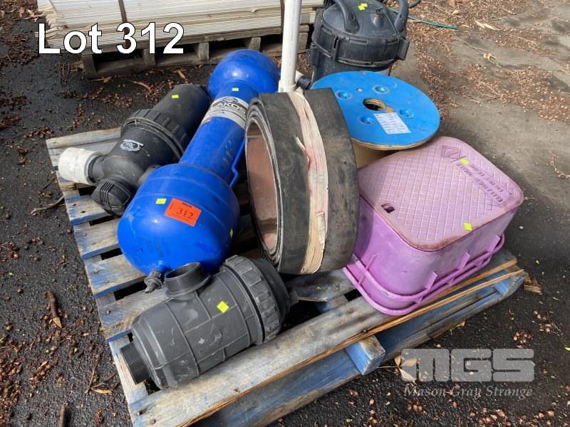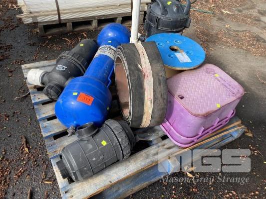 LAKOS SEPARATOR, ASSORTED IN LINE FILTER UNITS, ASTRAL LEAF CATCHER, POOL FILTER, DURA METER BOXES & RUBBER BELT 1 x PALLET