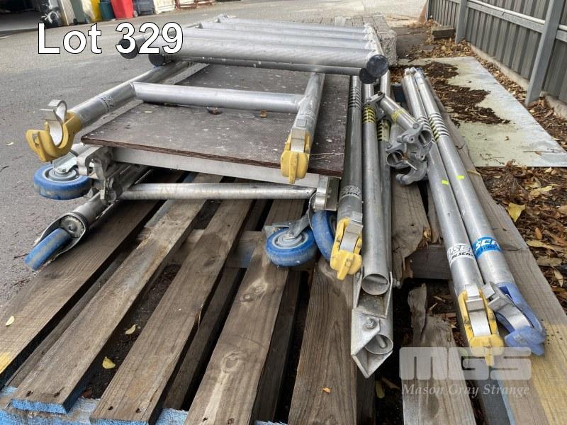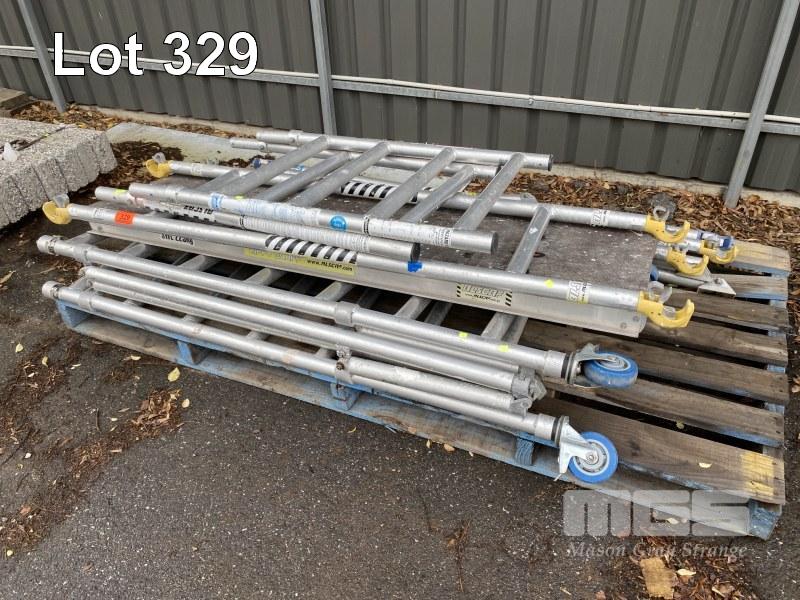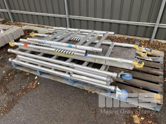 ALLOY SCAFFOLDING, ALSCAF TYPE: ZIPPY SCAFF COMPLETE MODULAR, BUILDS TO 1800mm WORK HEIGHT WITH HAND RAILS,MOBILE INCLUDES WORK PLATFORM & BRACE BARS, 1 x PALLET