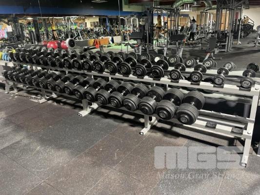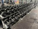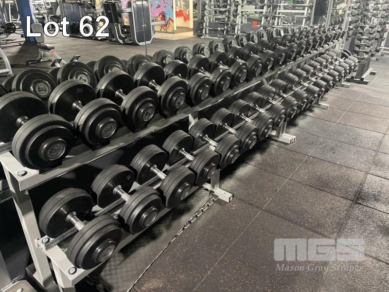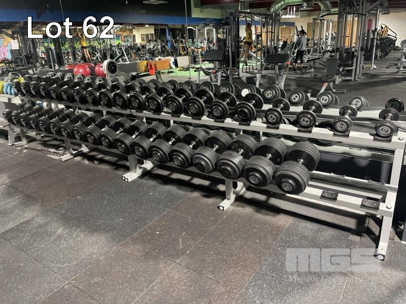 AUSTRALIAN BAR BELL CO, SET DUMBBELLS, INC 2 x RACKS 19 x PAIRS BELLS, 2.5-50kg