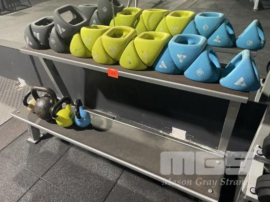7 x PAIRS CELSIUS Y BELLS, GREY, YELLOW & BLUE, 4 x KELLY BELLS & 2 TIER RACK