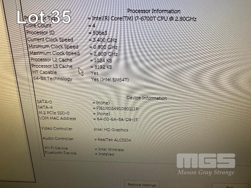 DESKTOP PC, DELL OPTIPLEX 7040 MICRO, CORE i7 6700T (6TH GEN) @ 2.8GHz, 8GB DDR4 RAM, 128GB M.2 SSD, INTEL HD VIDEO, 6 x USB, Wi-Fi, BLUETOOTH, WINDOWS 10 PRO INSTALLED & POWER SUPPLY (NO KEYBOARD, NO MOUSE) S/N:7R5K7C2