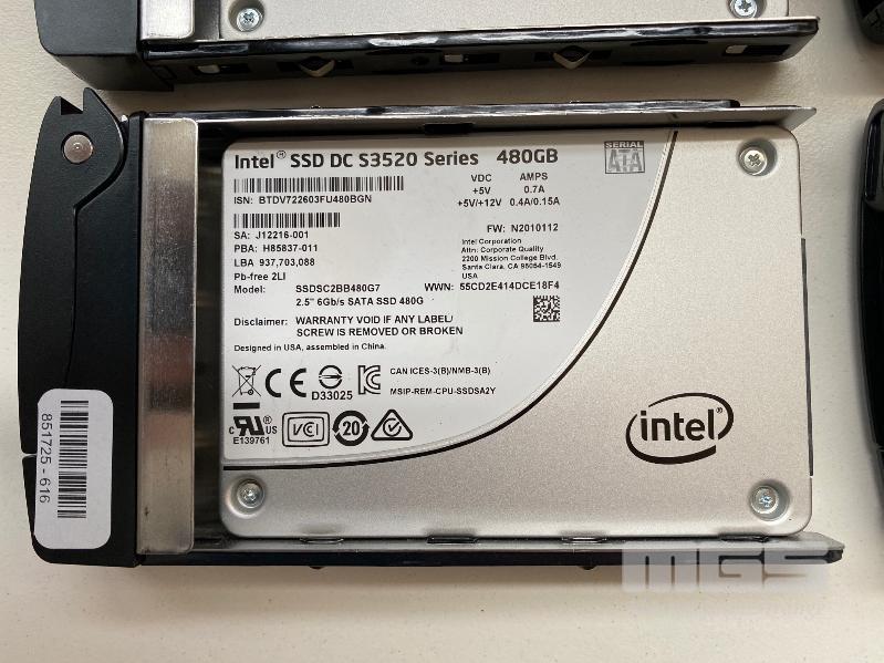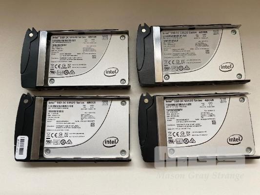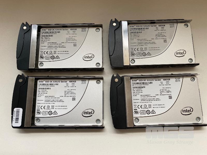 4 x INTEL 480GB SOLID STATE DRIVES, DC S3520 SERIES, SATA, 2.5" WITH CADDIES