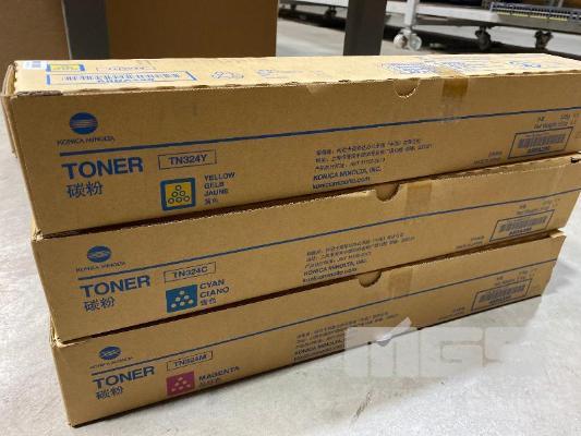 3 x KONICA MINOLTA PHOTOCOPIER TONER CARTRIDGES, TN324Y, TN324C, TN324M