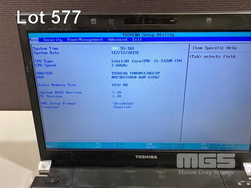 LAPTOP, TOSHIBA PORTEGE R930 (PT331A-01X00101), CORE i5 3320M (3RD GEN) @ 2.6GHz, 8GB DDR3 RAM, 128GB SSD, DVD-RW, 13.3" WIDESCREEN (1366x768), INTEL VIDEO, Wi-Fi, BLUETOOTH, WINDOWS 10 PRO INSTALLED & POWER SUPPLY (NOTE DAMAGE TO CASING) S/N:9C063953H