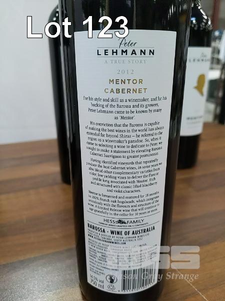 2012 PETER LEHMANN "MENTOR" BAROSSA CABERNET. PACK OF 6 X 750ML CLARET BOTTLES, UNDER SCREW CAP. FILL LEVELS ALL EXCELLENT. SCREW CAPS ALL SOUND AND CLEAN. BOX VERY GOOD. BOTTLES & LABELS VERY GOOD TO EXCELLENT.