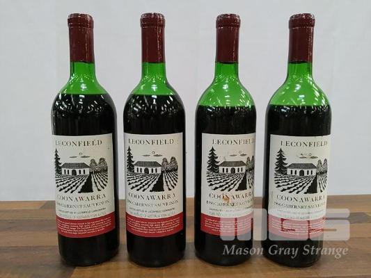 1986 LECONFIELD COONAWARRA CABERNET SAUVIGNON. 4 X 750ML CLARET BOTTLES, UNDER CORK. FILL LEVELS "LOW SHOULDER" TO "MID SHOULDER". CAPSULES GOOD. BOTTLES & LABELS FAIR TO GOOD.