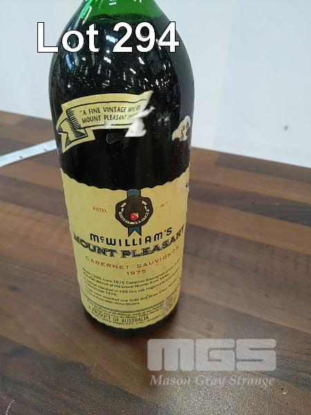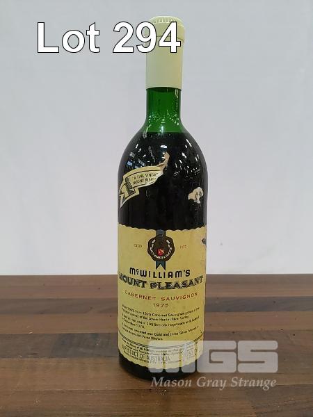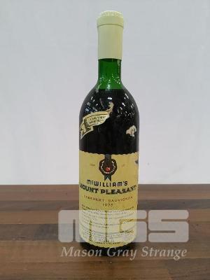 1975 MCWILLIAMS MOUNT PLEASANT CABERNET SAUVIGNON. SINGLE 750ML CLARET BOTTLE, UNDER CORK. ** POKOLBIN DISTRICT LOWER HUNTER RIVER VALLEY ** FILL LEVEL "TOP SHOULDER". PLASTIC CAPSULE GOOD. BOTTLE FAIR. LABELS AVERAGE, RIBBON LIFTED.
