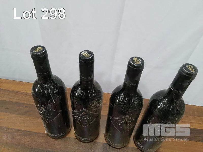1995 ROSEMOUNT ESTATE "ESTATE BOTTLED" SHIRAZ. 4 X 750ML CLARET BOTTLES, UNDER CORK. FILL LEVELS ALL "BASE OF NECK". CAPSULES GOOD. BOTTLES AND LABELS AVERAGE TO POOR.