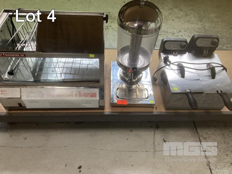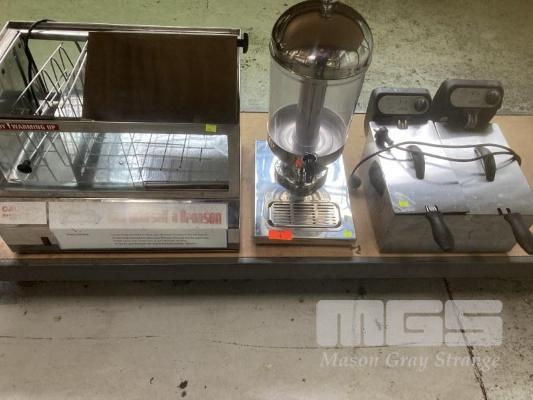 HOT DOG STEAMER ( MISSING 1 LID ), DEEP FRYER & DRINK DISPENSER