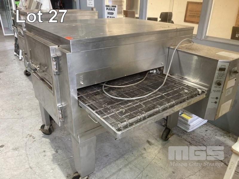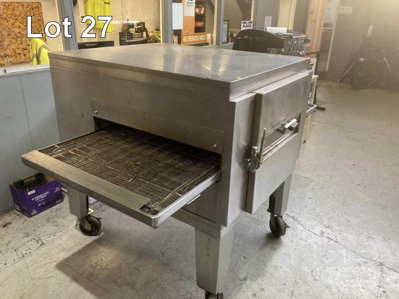 CONVEYOR PIZZA OVEN, LINCOLN IMPINGER MOD: 1456 32", STAINLESS STEEL CASED, GAS ON MOBILE STAND