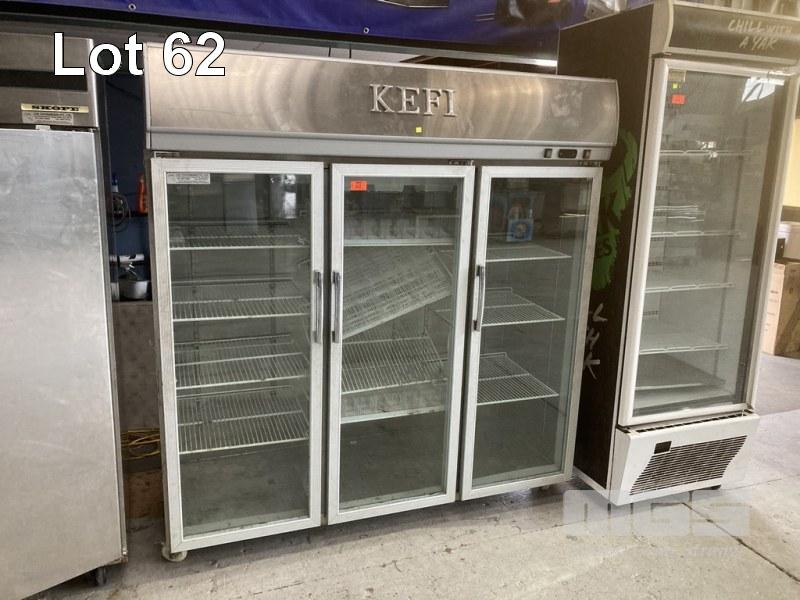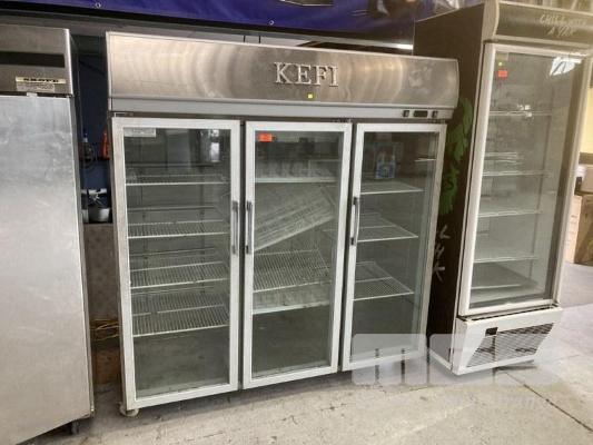UPRIGHT 3 DOOR DISPLAY FRIDGE, QB15L6 STAINLESS STEEL CASED, SELF CONTAINED UNIT 240V