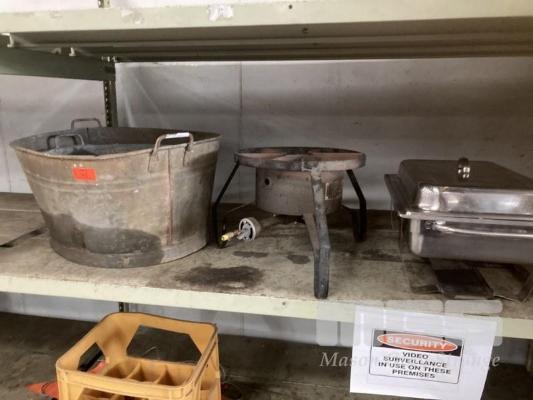 2 x METAL TUBS, GAS BURNER & CHAFING DISH