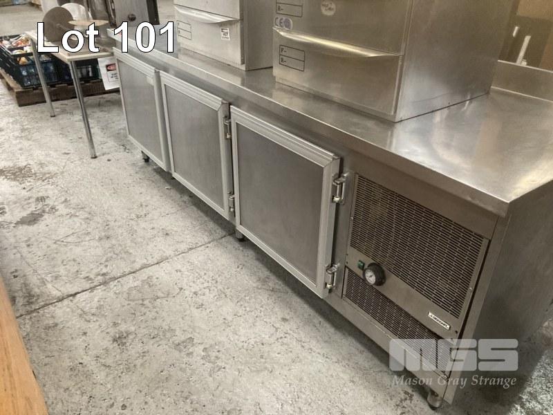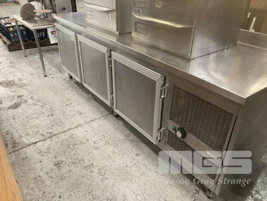 COUNTER CHEFS FRIDGE, 266 x 85cm 3 DOOR, STAINLESS STEEL CASED, 240V
