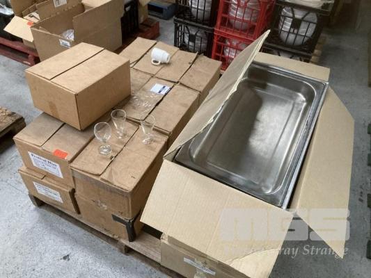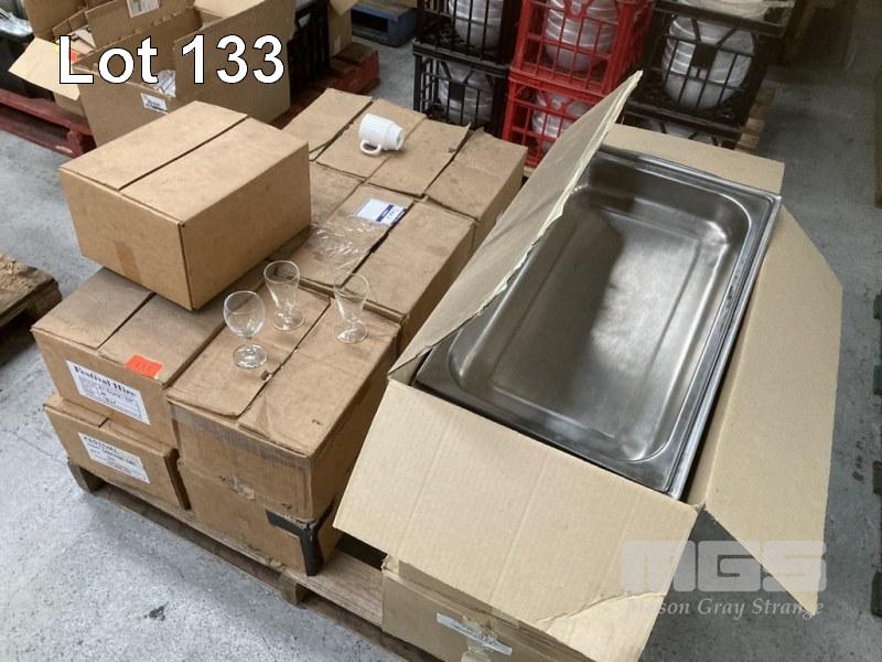 ASSORTED GLASSWARE & 4 x CHAFING DISHES