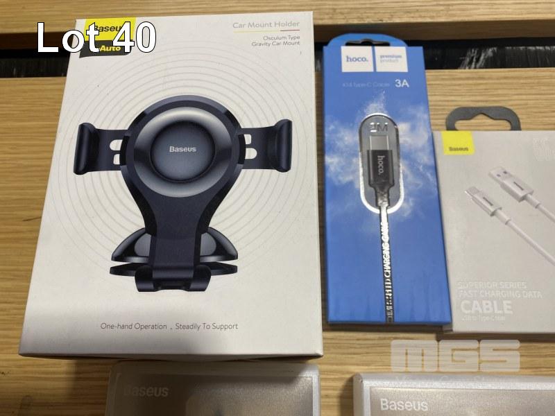 BASEUS CAR MOUNT HOLDER, CAR CHARGER, USB TO USB-C CABLES (1m & 2m), DESK PHONE HOLDER & 2 x BASEUS JELLY 15W WIRELESS CHARGERS (BS-W510)