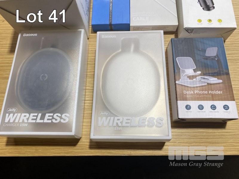 BASEUS CAR MOUNT HOLDER, CAR CHARGER, USB TO USB-C CABLES (1m & 2m), DESK PHONE HOLDER & 2 x BASEUS JELLY 15W WIRELESS CHARGERS (BS-W510)