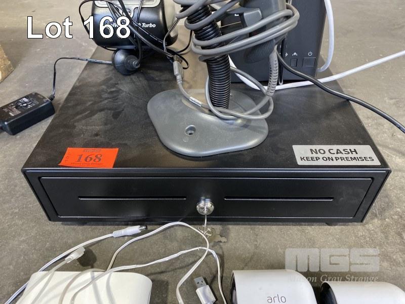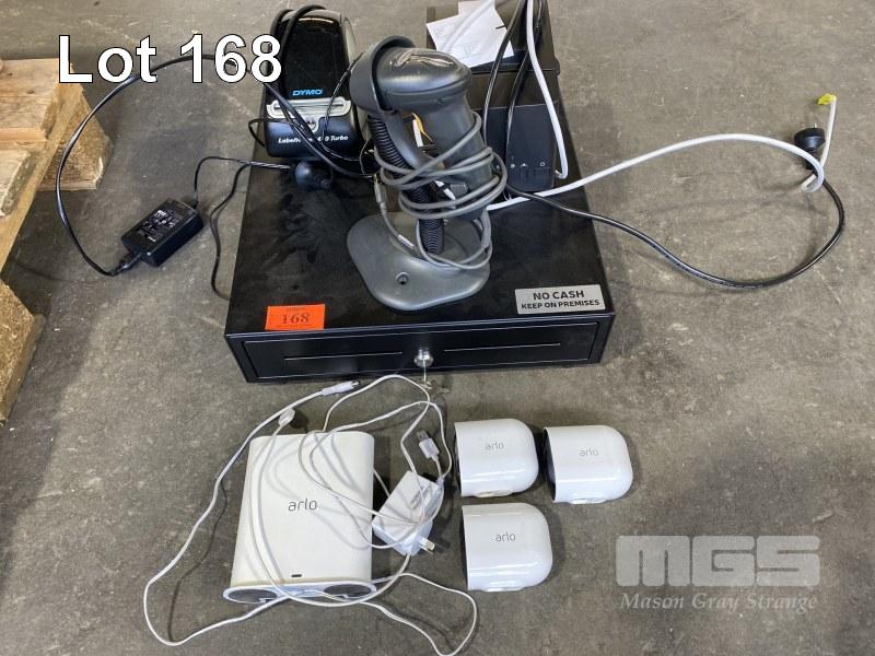 POS CASH DRAWER, BARCODE SCANNER, EPSON DOCKET PRINTER, DYMO LABEL PRINTER, ARLO CAMERA SYSTEM (INCOMPLETE)