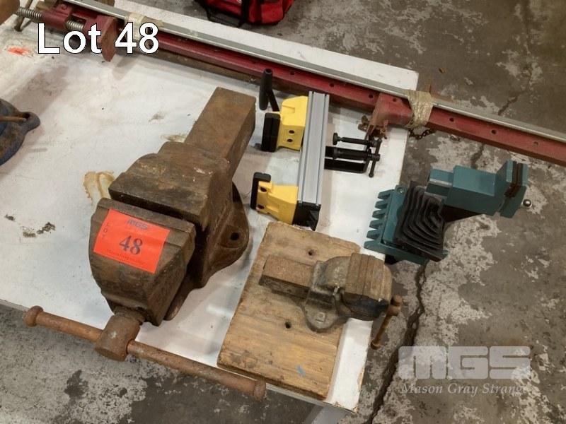 3 x ASSORTED VICES & 2 x SASH CLAMPS