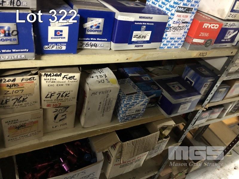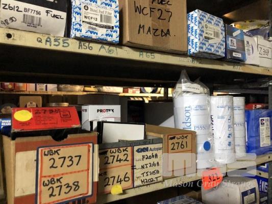 CONTENTS OF 5 SHELVES, FUEL FILTERS, DONALDSON, COOPER, MAX, BALDWIN, 3 x WATER SEPARATORS