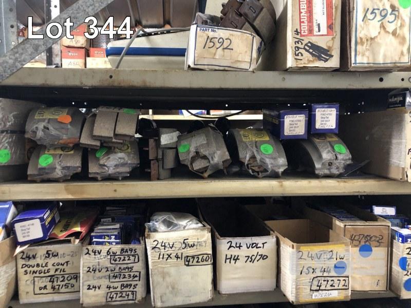 CONTENTS OF 5 SHELVES, LARGE QUANTITY BRAKE LIGHT & TAIL LIGHT GLOBES
