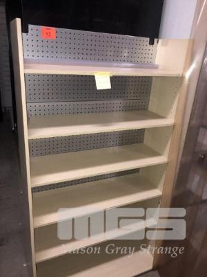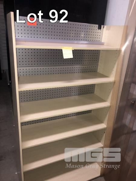6 TIER TIMBER LAMINATE DISPLAY STAND, METAL PEG BOARD BACK, 1580 x 900 x 400mm