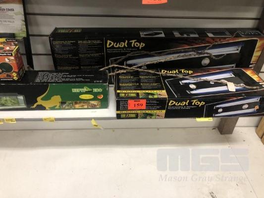 ASSORTED REPTILE ENCLOSURE ACCESSORIES, TERRARIUM CANOPY, LIGHT UNITS, FLURO & HALOGEN ETC.