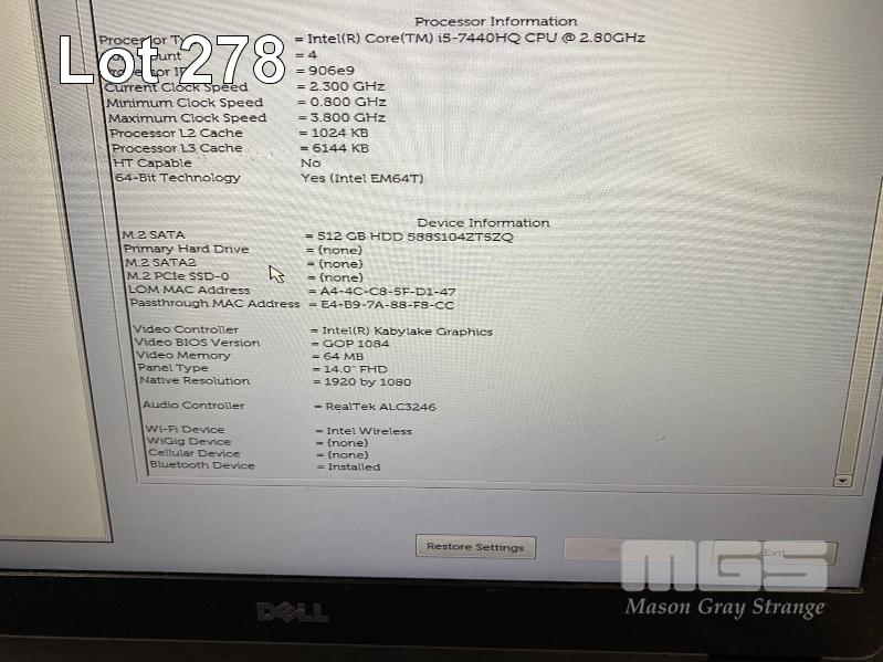 LAPTOP, DELL LATITUDE 5480, CORE i5 7440HQ (7TH GEN) @ 2.9GHz, 8GB DDR4 RAM, 512GB M.2 SSD, 14" WIDESCREEN (1920x1080), INTEL KABYLAKE GRAPHICS, Wi-Fi, BLUETOOTH, WINDOWS 10 HOME INSTALLED & POWER SUPPLY (NOTE: NO BATTERY, MARKS ON SCREEN) S/N:8MFM4Q2