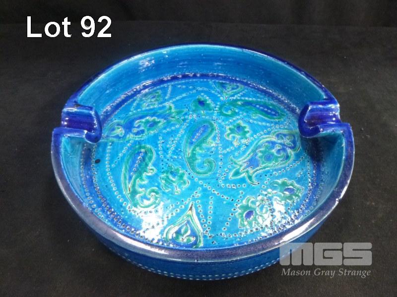 GLAZED, BLUE BITOSSI CIGAR/ASHTRAY. 24.5cm DIAMETER, MARK ON BASE READS, 69/21B ITALY
