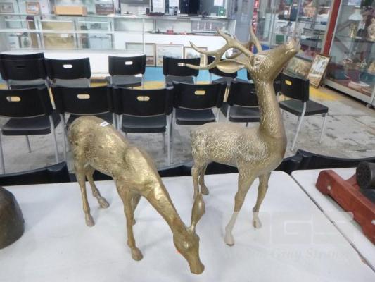 BRASS DEER WITH DOE STATUES, (DEER HEIGHT 57cm)