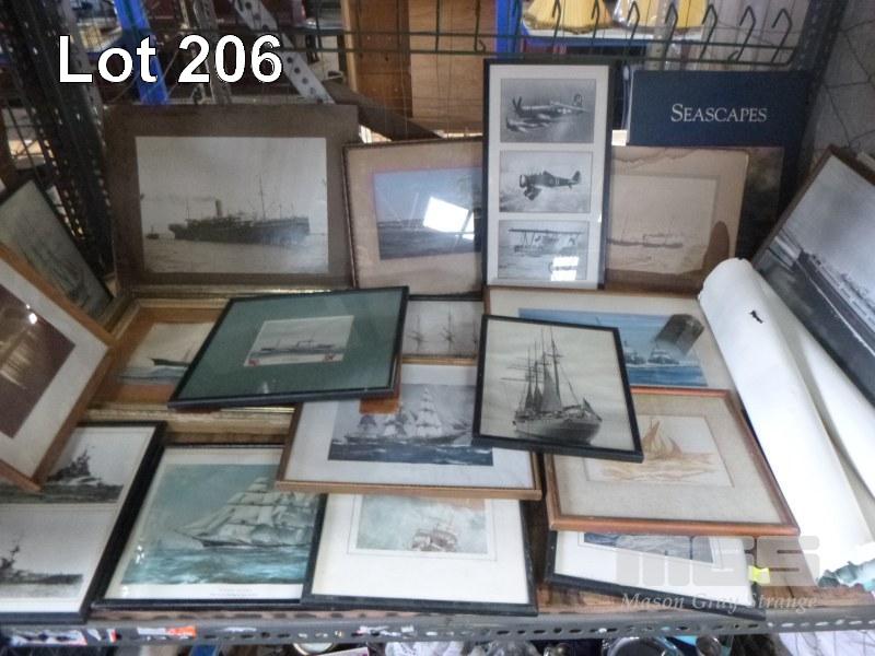 ASSORTED SHIPPING & PLANE RELATED FRAMED PHOTOGRAPHS & PRINTS, 2 x BAYS