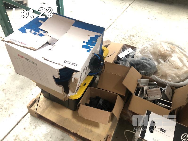 LARGE QUANTITY ASSORTED ELECTRICAL FITTINGS & FIXTURE BRACKETS & CABLE, LAMP HOLDERS, CB'S & SWITCHES