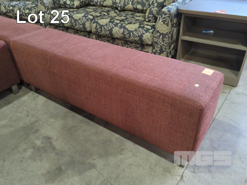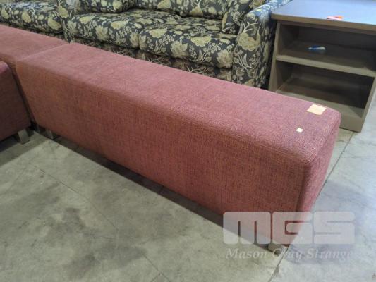 LARGE UPHOLSTERED OTTOMAN/BENCH - TEXTURED COARSE FABRIC, MIXED BRICK RED WEAVE. 160 X 40 X 52 CM (W D H).