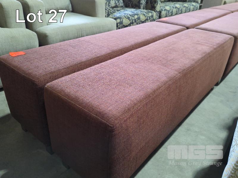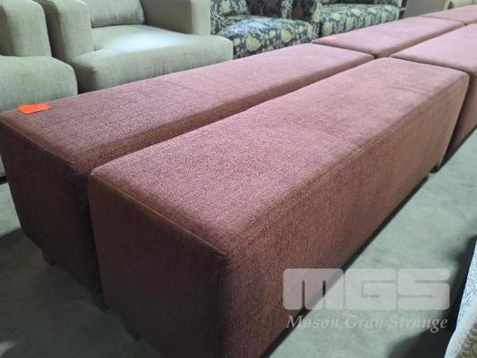2 X LARGE UPHOLSTERED OTTOMAN BENCHS - TEXTURED COARSE FABRIC, MIXED BRICK RED WEAVE. 160 X 40 X 52 CM (W D H).