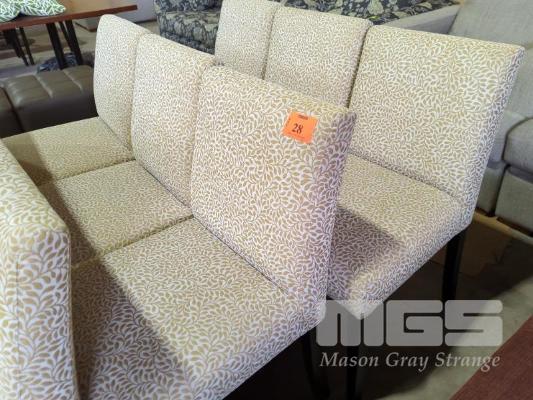 6 X UPHOLSTERED BOUDOIR/DINING CHAIRS - SCROLLING VINE PATTERN.